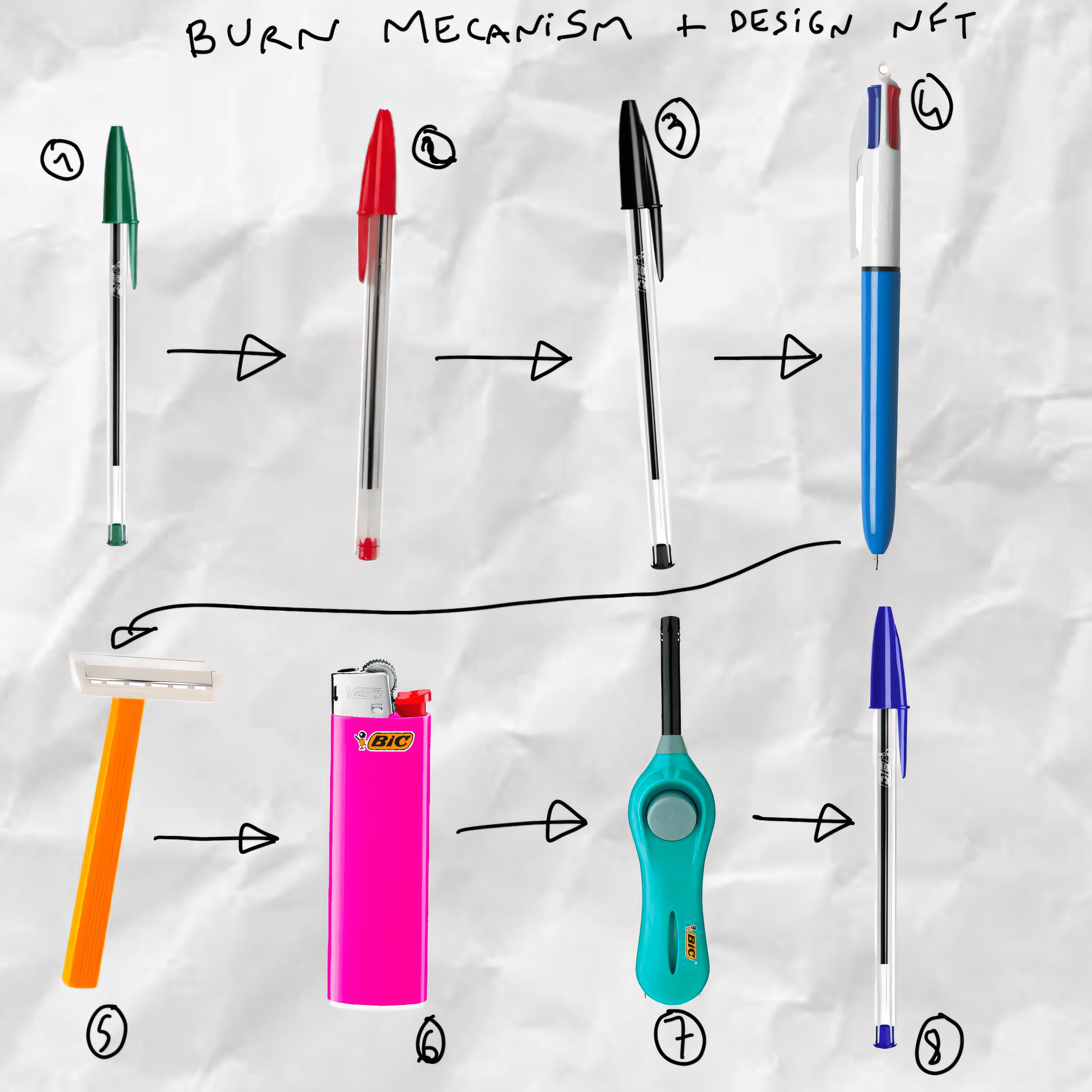 Dive into our NFT collection inspired by BIC, featuring a new mint & burn mechanism for